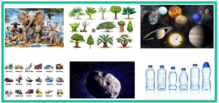 شکل جرم های آسمانی در فضا، شکل های گوناگون گیاهان و جانوران.  شکل های گوناگون ابزار جا به جایی که