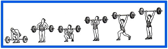 .یک ضرب: بردن هالتر با یک حرکت از روی زمین به بالای سر –
