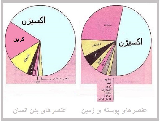 / در بدن موجودات زنده بیشتر چهار عنصر اکسیژن، هیدروژن، کربُن و نیتروژن